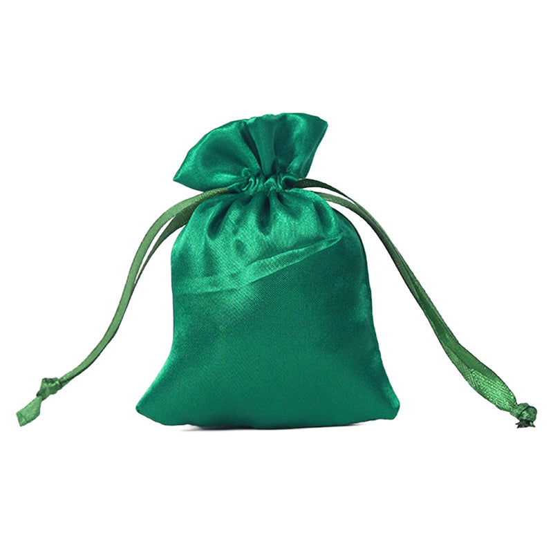 50pcs Green Satin Bags with Drawstring - 3 Sizes