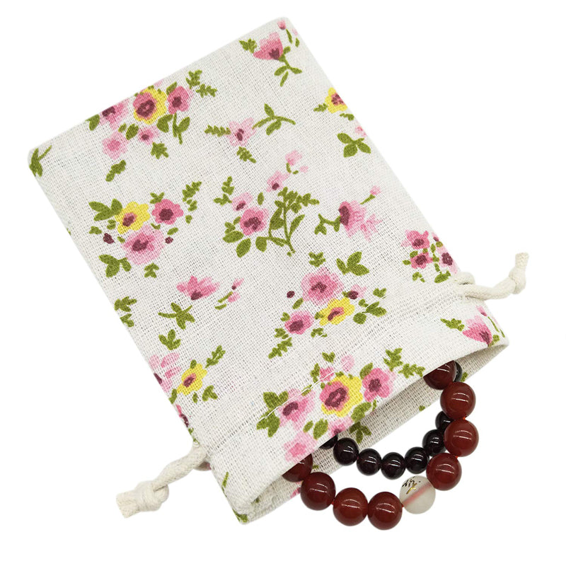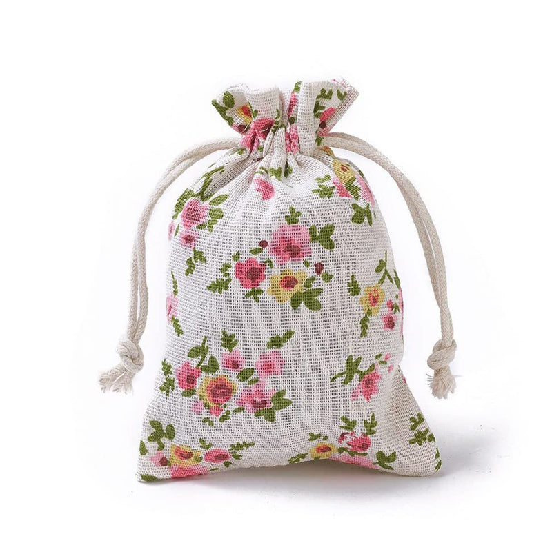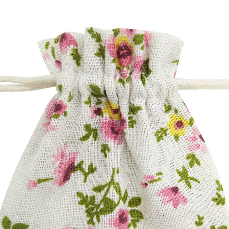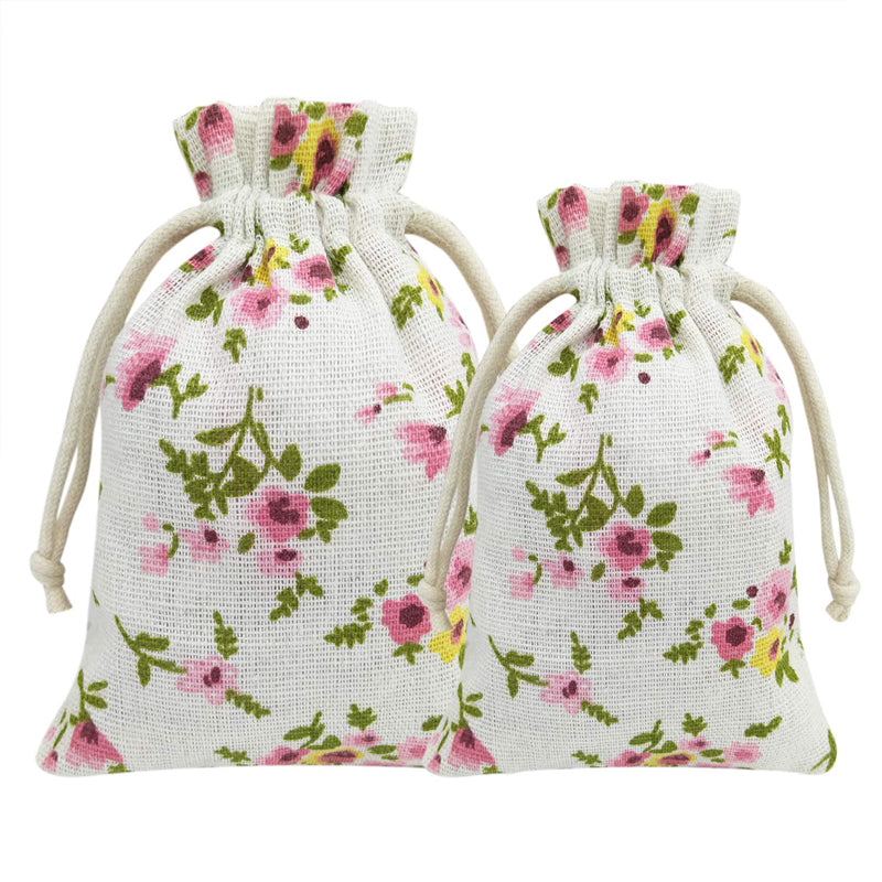 Usages: linen gift pouches with small flower pattern are good for packing ornaments, soaps, candles, craft pieces, cream jars, jewellery, snacks, and more.